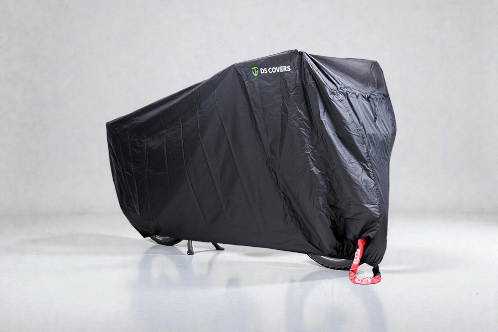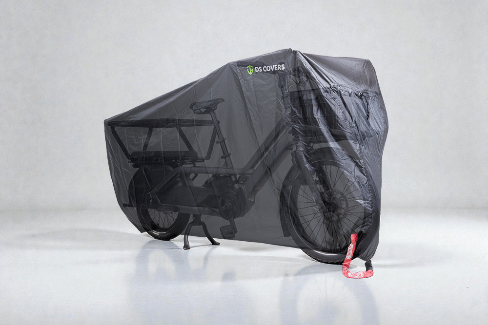 The CARGO LT cargo bike cover provides reliable protection for your longtail bike against rain, frost, and UV. The cover is made from durable 300D polyester and is fully waterproof thanks to double-stitched seams with waterproof tape on the inside. The elastic hem and integrated drawstrings ensure a snug fit around any longtail bike.