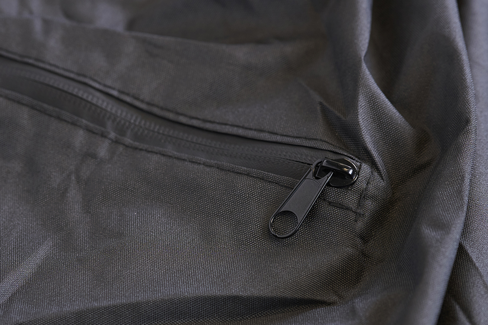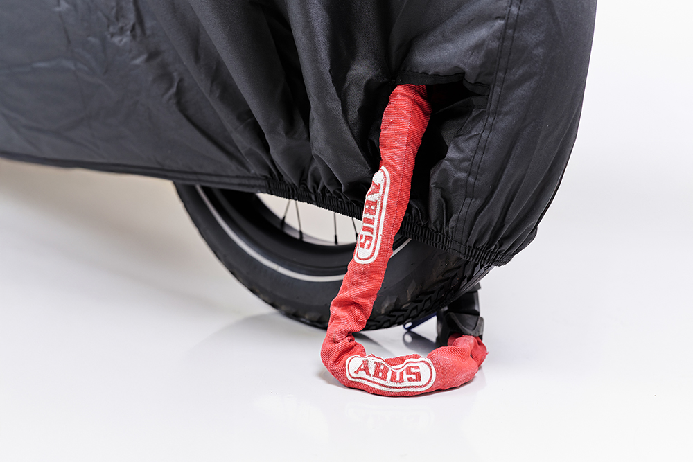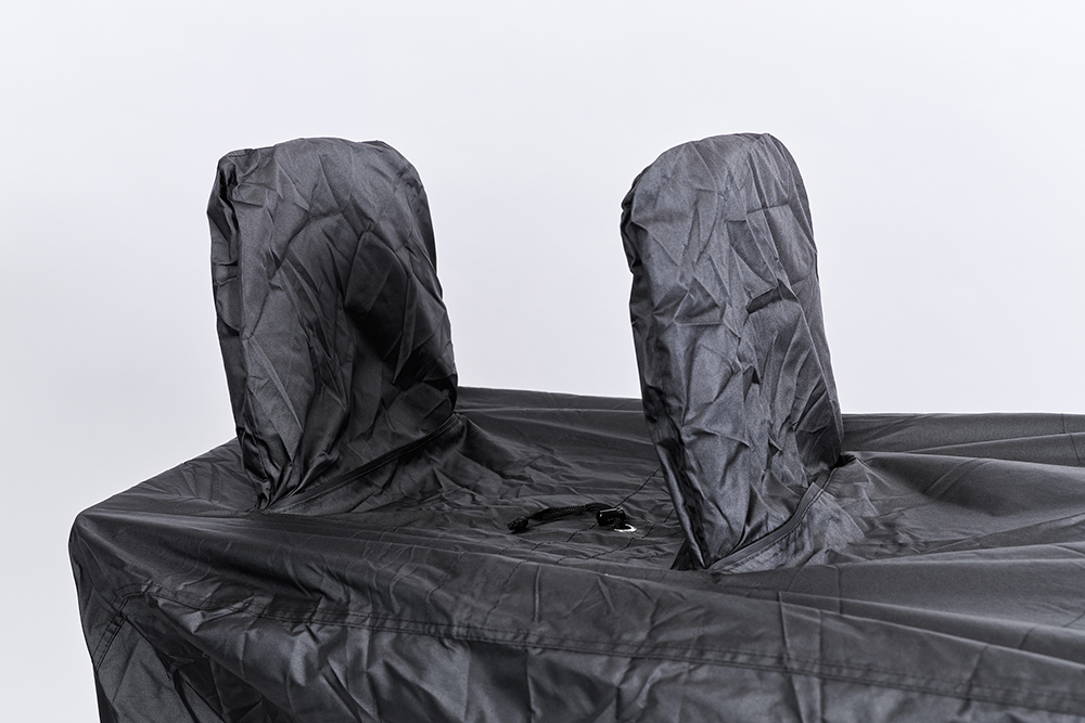 At the rear, fold-out sections are included that fit perfectly over one or two child seats. Practical lock openings allow use with a chain lock. The cover is easy to fit and comes with a convenient storage bag.